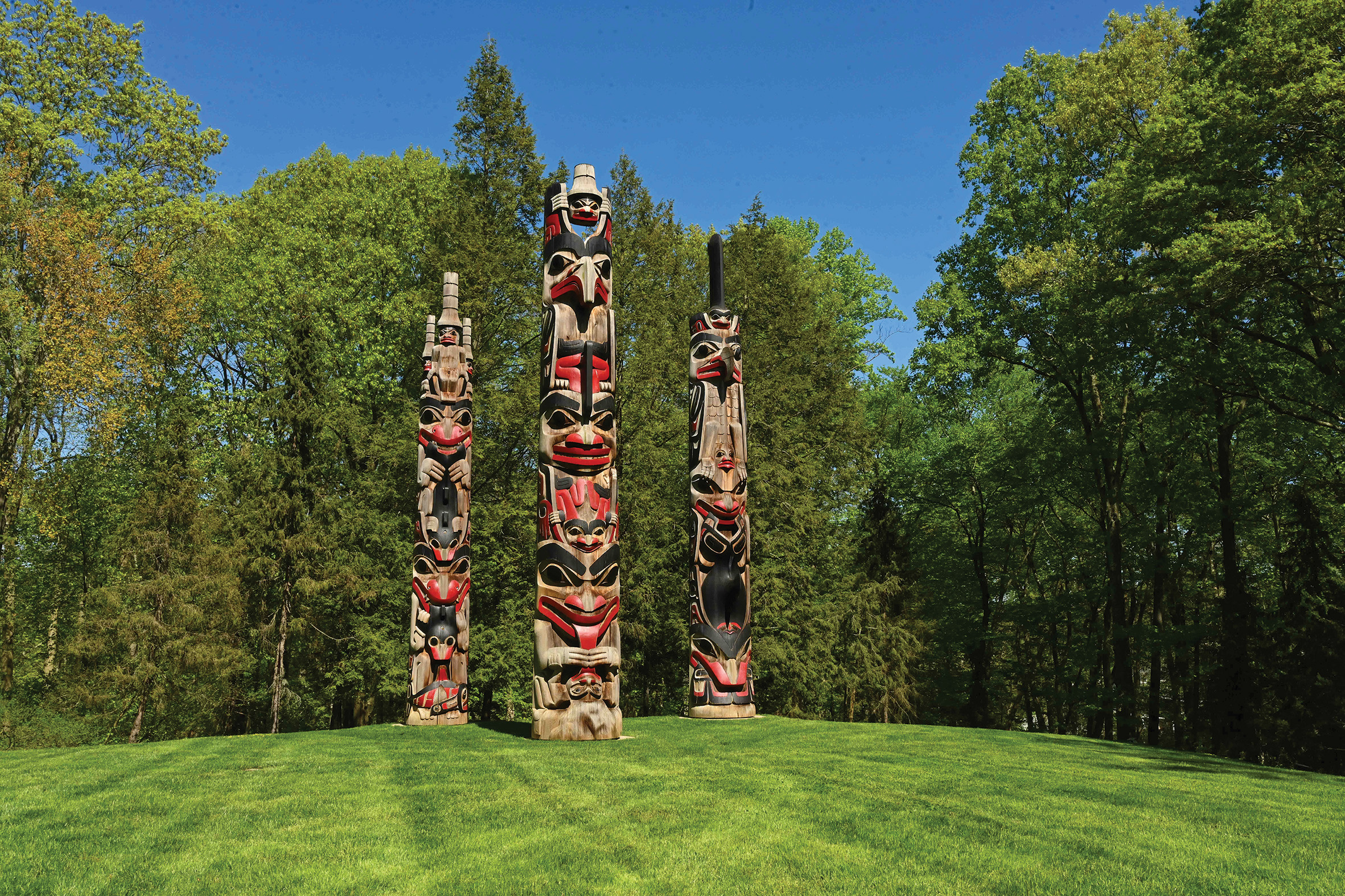 The 42 sculptures on view at the DMK Sculpture Gardens mostly favor Midcentury Modern styling; highlights include “Passage” by Richard Erdman, “Grizzly Bear” by David Wynne, and “Haida Totems” by Robert Davidson, all commissioned for the gardens. The first sculpture placed here in 1970 was Moore’s “Double Oval” while Calder’s abstract “Hats Off” has long been a crowd favorite.