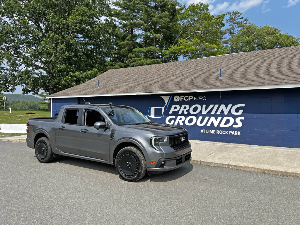 In fairness this was not just any pickup, but Ford’s all new Maverick Lobo. Ford’s sporty variant of their excellent and hot selling Maverick compact pickup features a slightly lowered suspension tuned for on-road handling. Powered by a 250 HP 2.0L EcoBoost engine, the Lobo sends power to four snazzy Turbofan wheels through a 7-speed quick shift transmission. In track-only Lobo mode, you’ll find more rear bias so you can hang the tail out to rotate the truck through tight corners.