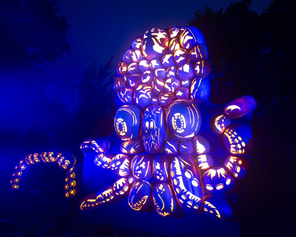 Returning this year are perennial favorite displays, such as the pumpkin planetarium, a completely immersive experience complete with music and lighting that visitors can walk through. “It has become a very popular photo and Instagram-worthy spot,” says Schweitzer. Other fan favorites include a 25-foot lighthouse, complete with a functioning and spinning light on top.