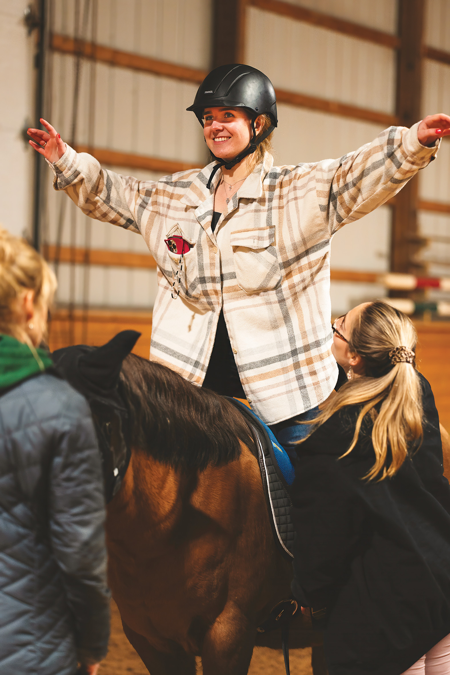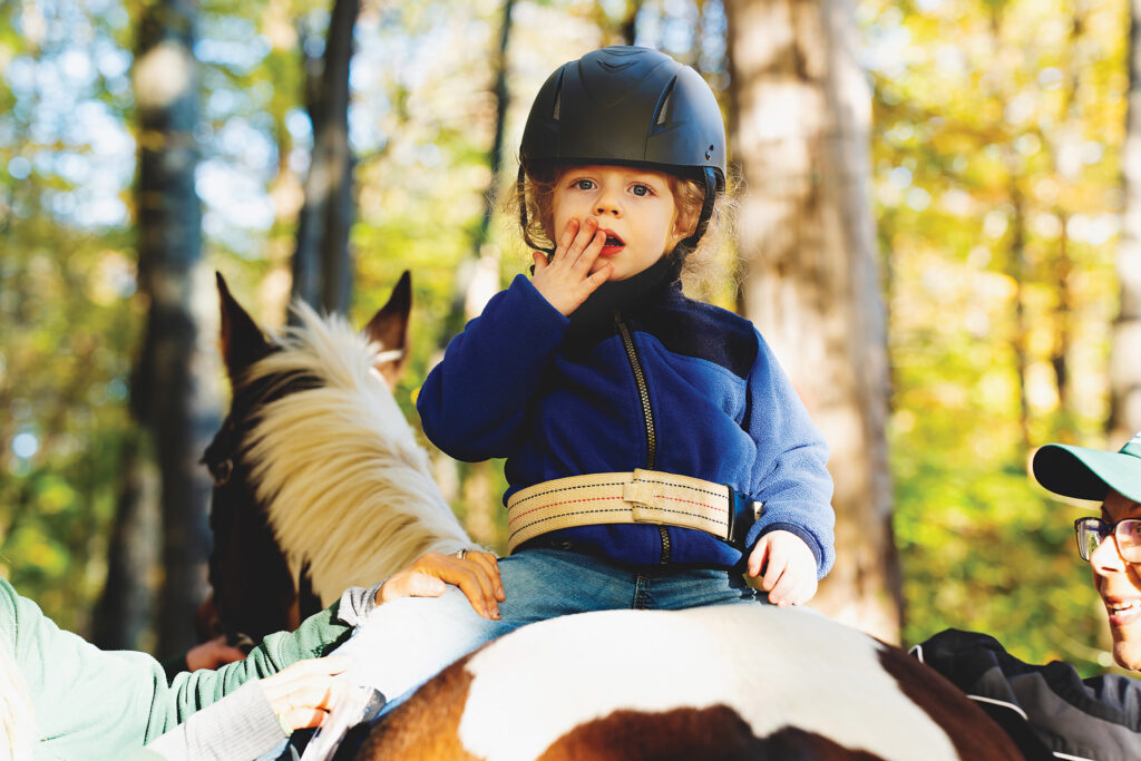Some results defy expectations altogether. A 30-year-old woman walked unassisted for the first time in her life after six months of physical therapy on horseback. A non-verbal child suddenly shouted “Whee!” after months of silent play—an echo of the sound his grandmother had lovingly repeated every time they went down the slide together. “We’re blessed to witness moments like these every day,” says Schermann.